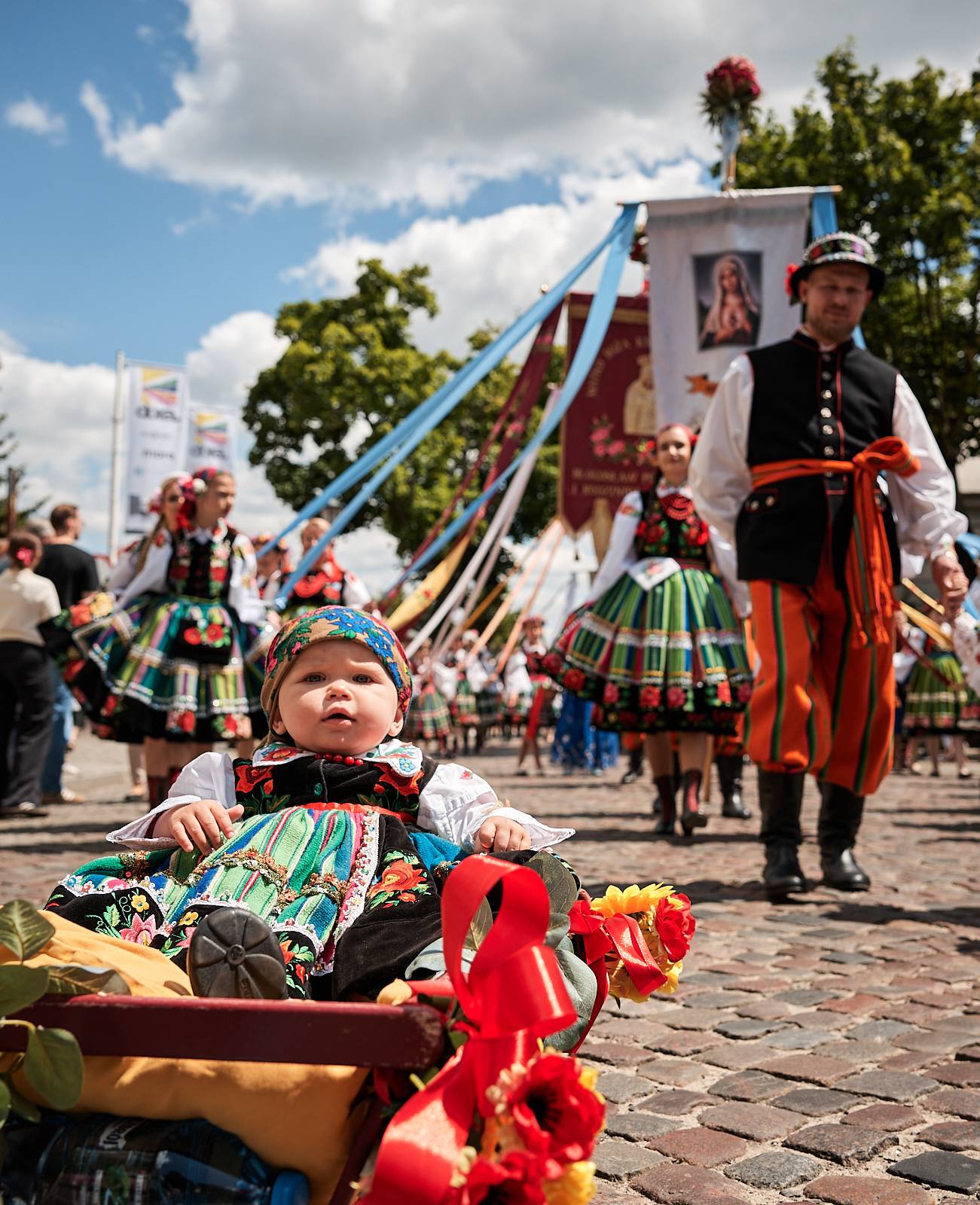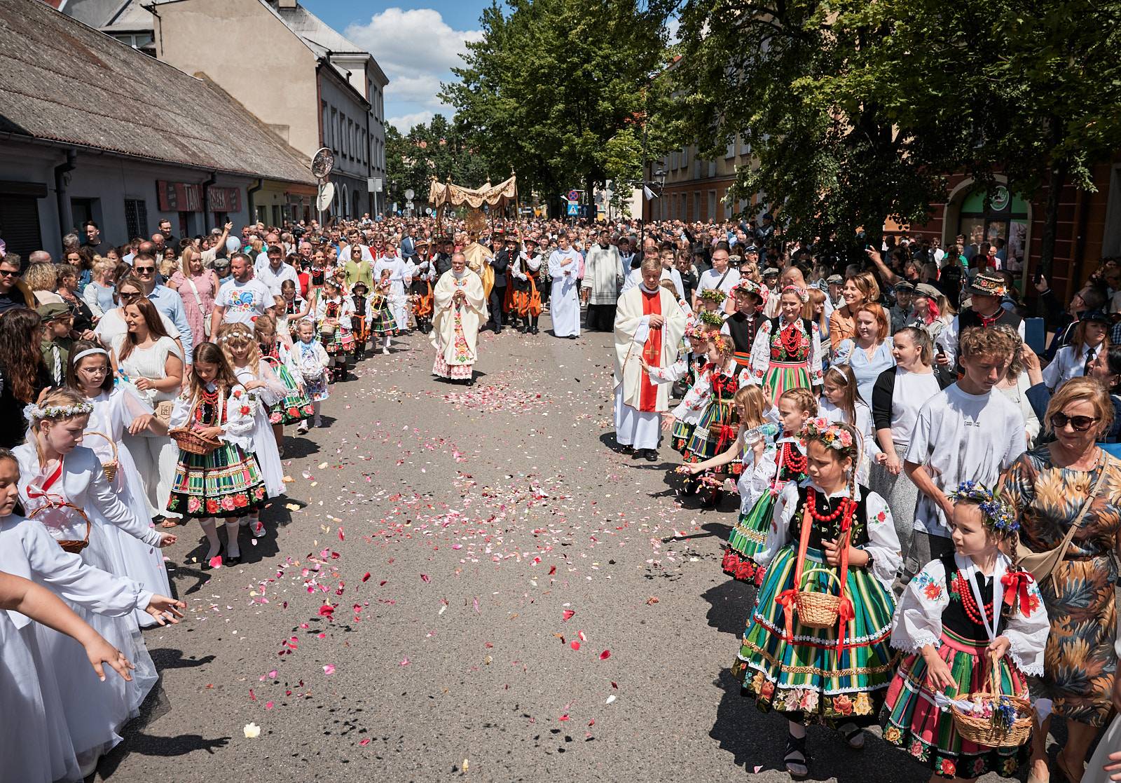 Łowicka procesja Bożego Ciała to nie tylko manifestacja wiary, ale też żywe świadectwo bogatej kultury ludowej i tradycji, które przez wieki były pielęgnowane przez lokalną społeczność. Wierni, ubrani w charakterystyczne dla regionu stroje z pasiakami – ręcznie tkane i haftowane, podkreślające regionalną tożsamość – wraz z kapłanami podążali ulicami miasta, tworząc niezwykle barwny i podniosły korowód.