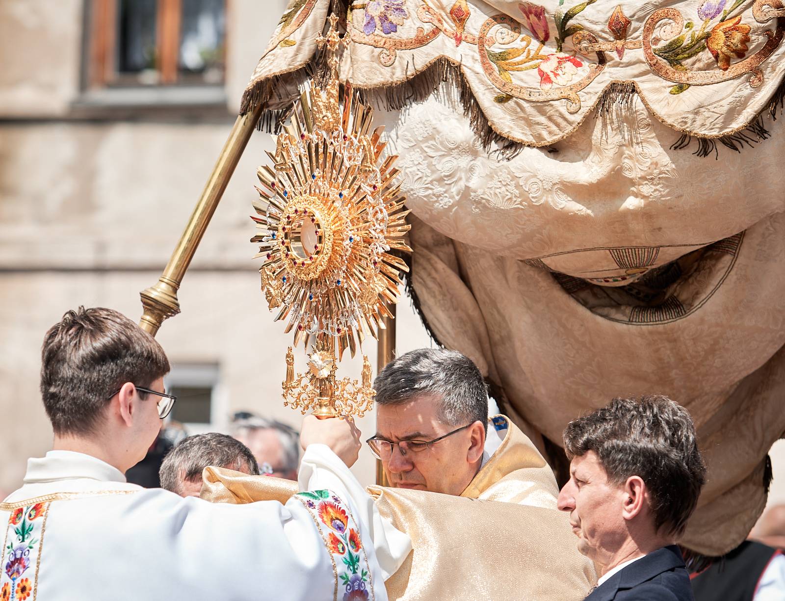 Podczas procesji cztery ołtarze, misternie udekorowane kwiatami, ziołami oraz tradycyjnymi wycinankami łowickimi, stały się miejscami zatrzymania i modlitwy. Każdy ołtarz przygotowywany był przez mieszkańców różnych parafialnych wspólnot, co podkreślało lokalną współpracę i duch jedności. To właśnie tutaj wierni oddawali cześć Najświętszemu Sakramentowi, towarzysząc kapłanom w czasie adoracji.