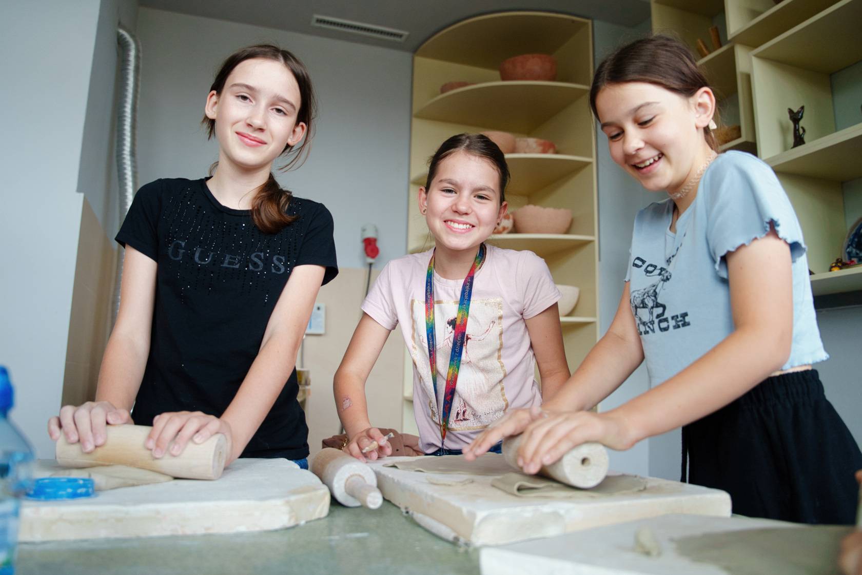 Na zdjęciach: dzieci podczas pierwszych wakacyjnych warsztatów garncarskich i teatralnych w Centrum Kultury i Sztuki w Skierniewicach.