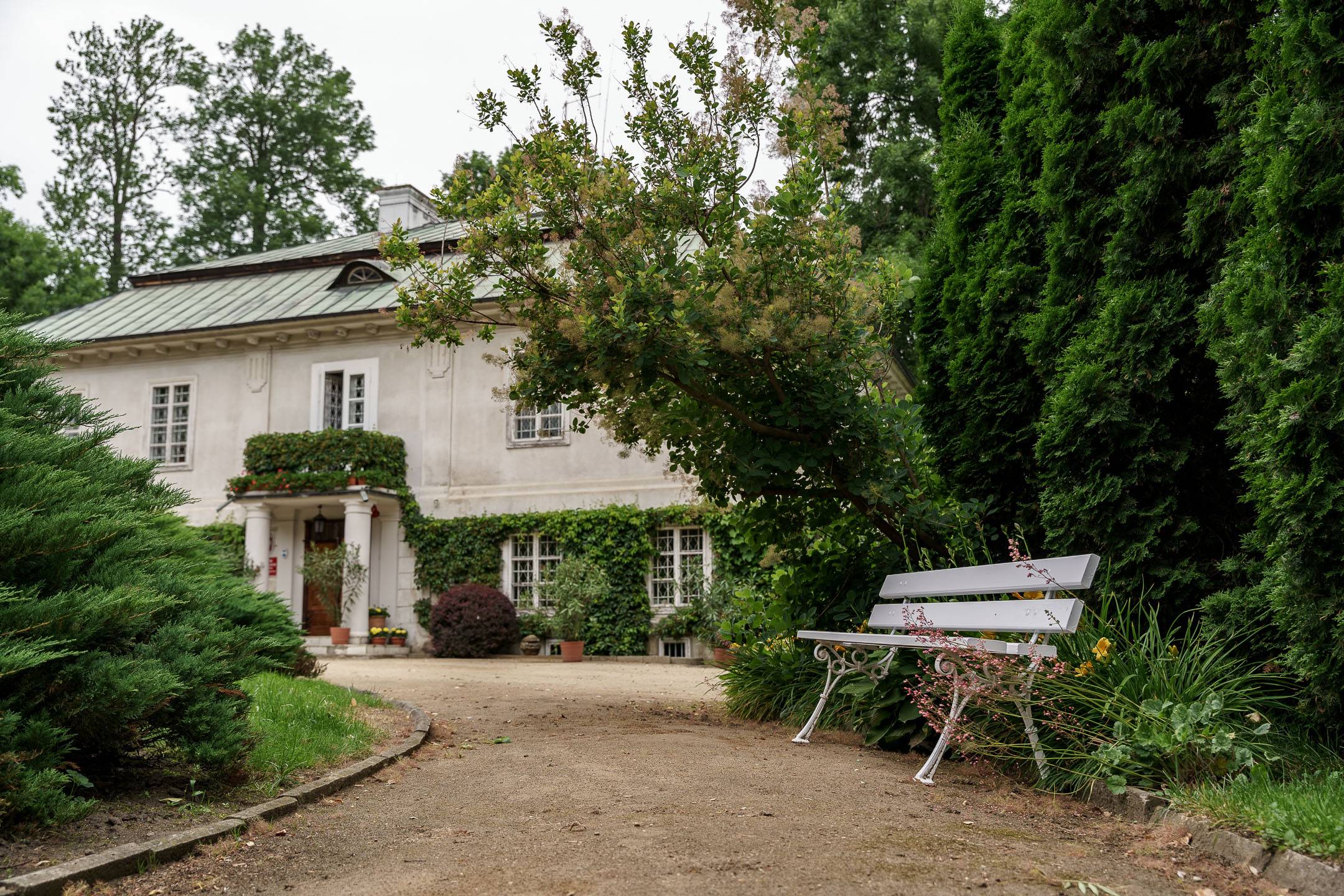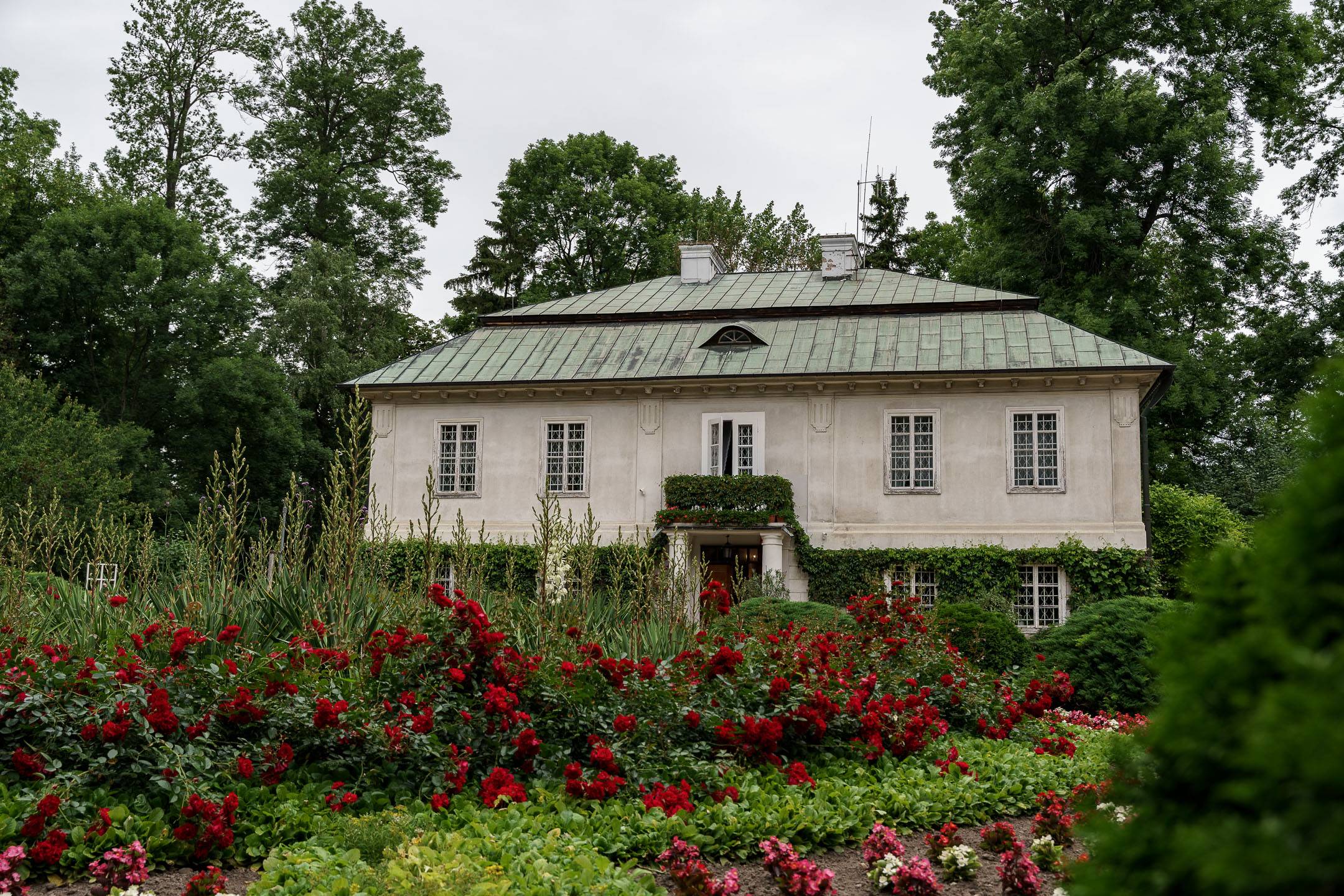 Swoje miejsce w historii ma także park otaczający muzeum – trzyhektarowy teren, który w 1995 roku został uhonorowany Złotym Medalem Ministra Kultury i Sztuki za wzorową rewitalizację. Dziś to nie tylko miejsce spacerów i plenerów, ale także przestrzeń pełna piękna i symboliki. Szczególną atrakcją ogrodu jest wspaniała kolekcja róż – zadbana, rozłożysta i niezwykle kolorowa. W sezonie letnim ogród rozkwita pełnią barw: od głębokich czerwieni i purpury po delikatne róże herbaciane, biele i kremy. Wśród kwiatowych kompozycji, drewnianych pergoli i zabytkowych drzew łatwo zatracić się w czasie, odnaleźć spokój i refleksję.