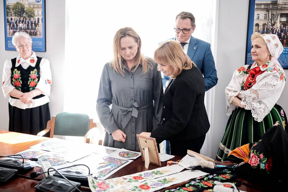 - A folklor to jest opowieść o nas samych. I to od nas zależy, jak ją napiszemy. Trzymam mocno kciuki, abyście napisali piękną historię, którą z dumą będziemy przekazywać kolejnym pokoleniom - mówiła marszałek Joanna Skrzydlewska zwracając się m.in. do twórczyń ludowych i dzieci z zespołu ludowego Koderki, które towarzyszyły władzom Łowicza przy podpisaniu umowy na dofinansowanie Centrum Folkloru.