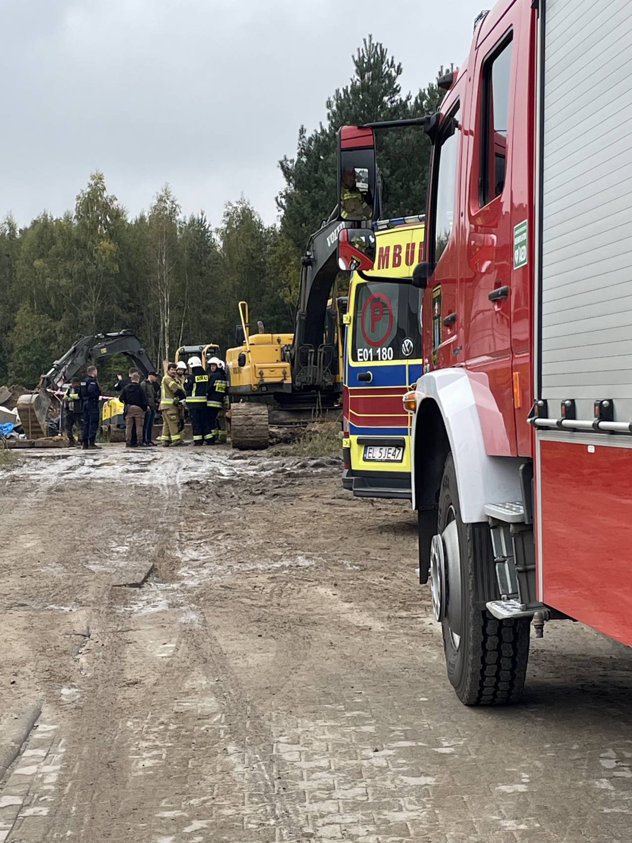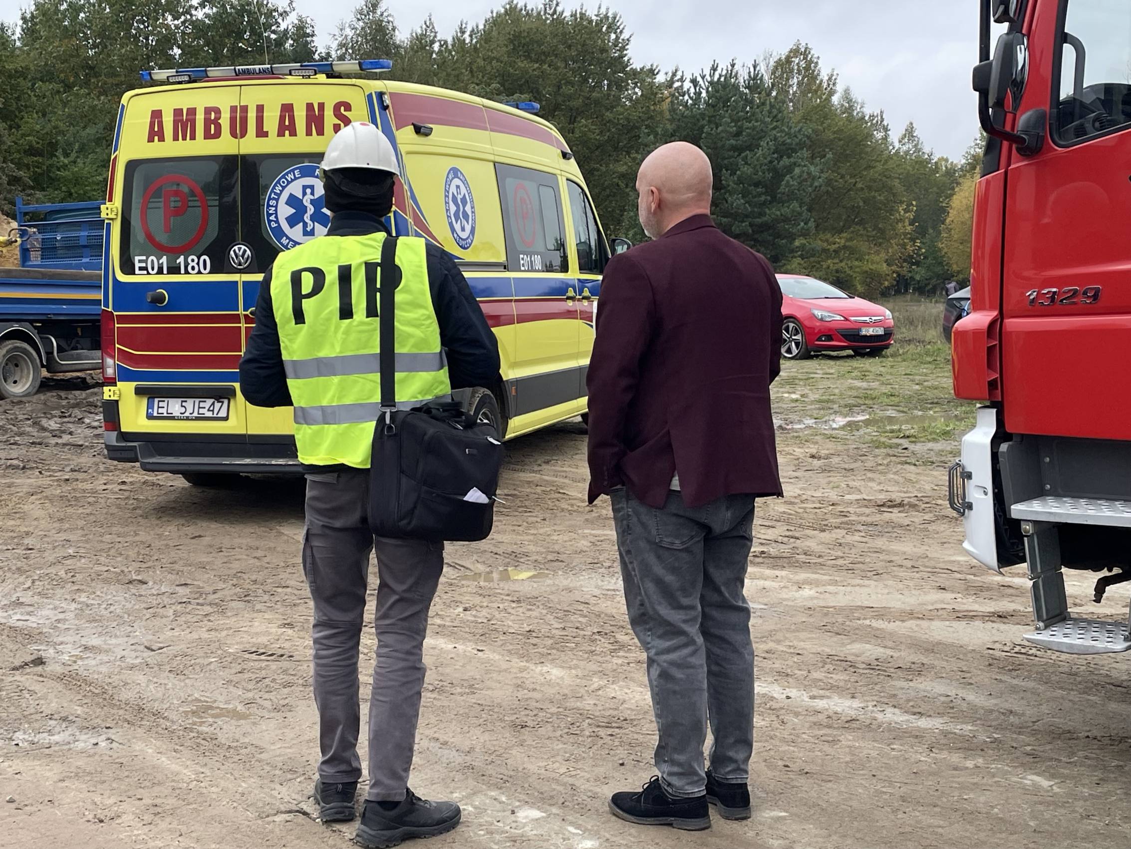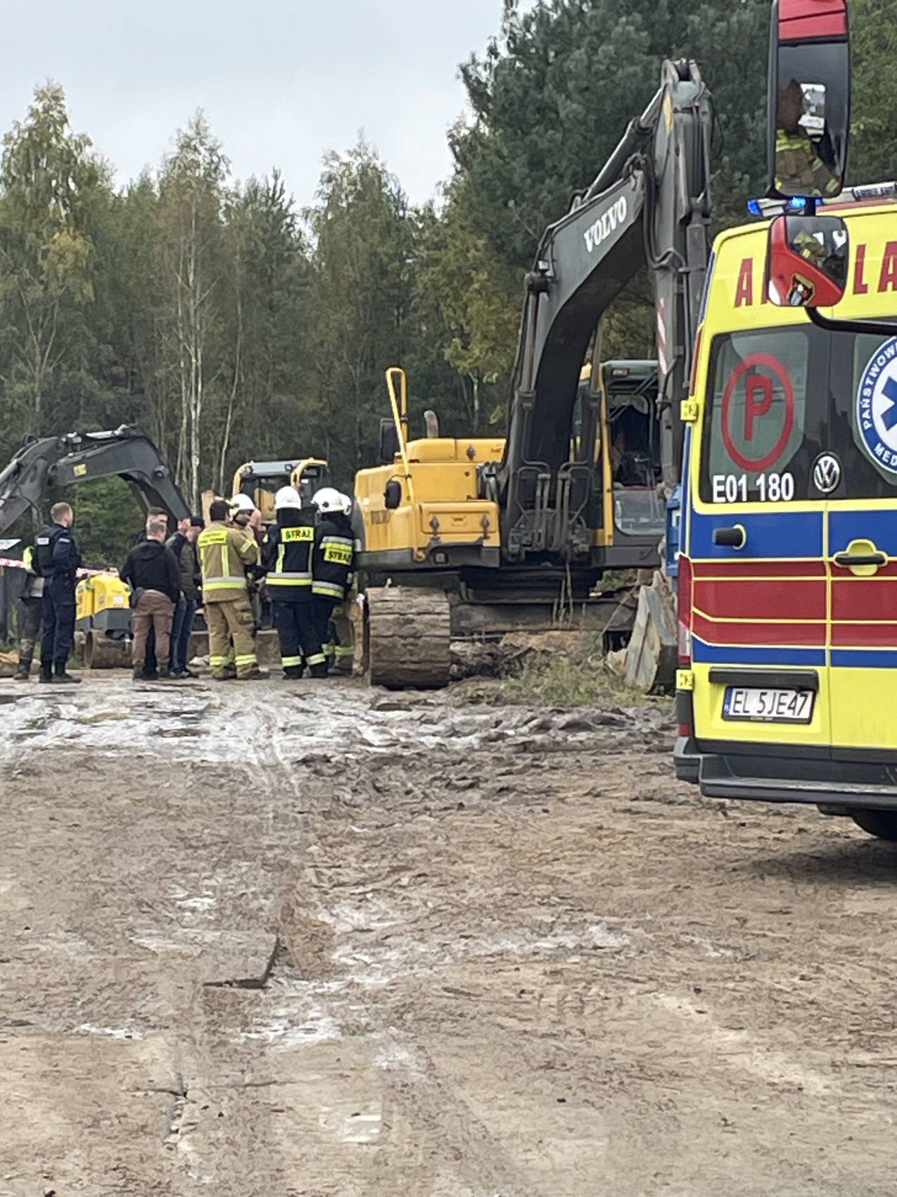 Jako pierwsi na miejscu zdarzenia pojawili się bełchatowscy policjanci, którzy razem z pracownikami przystąpili do odkopywania mężczyzny. Na miejsce natychmiast skierowano też trzy zastępy PSP oraz dwa zastępy OSP.