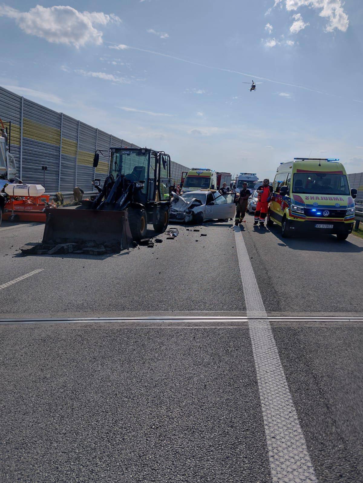 Wypadek na S8: Zderzenie hondy z koparko-ładowarką. Cztery osoby w szpitalu. "Ekspresówka" zablokowana