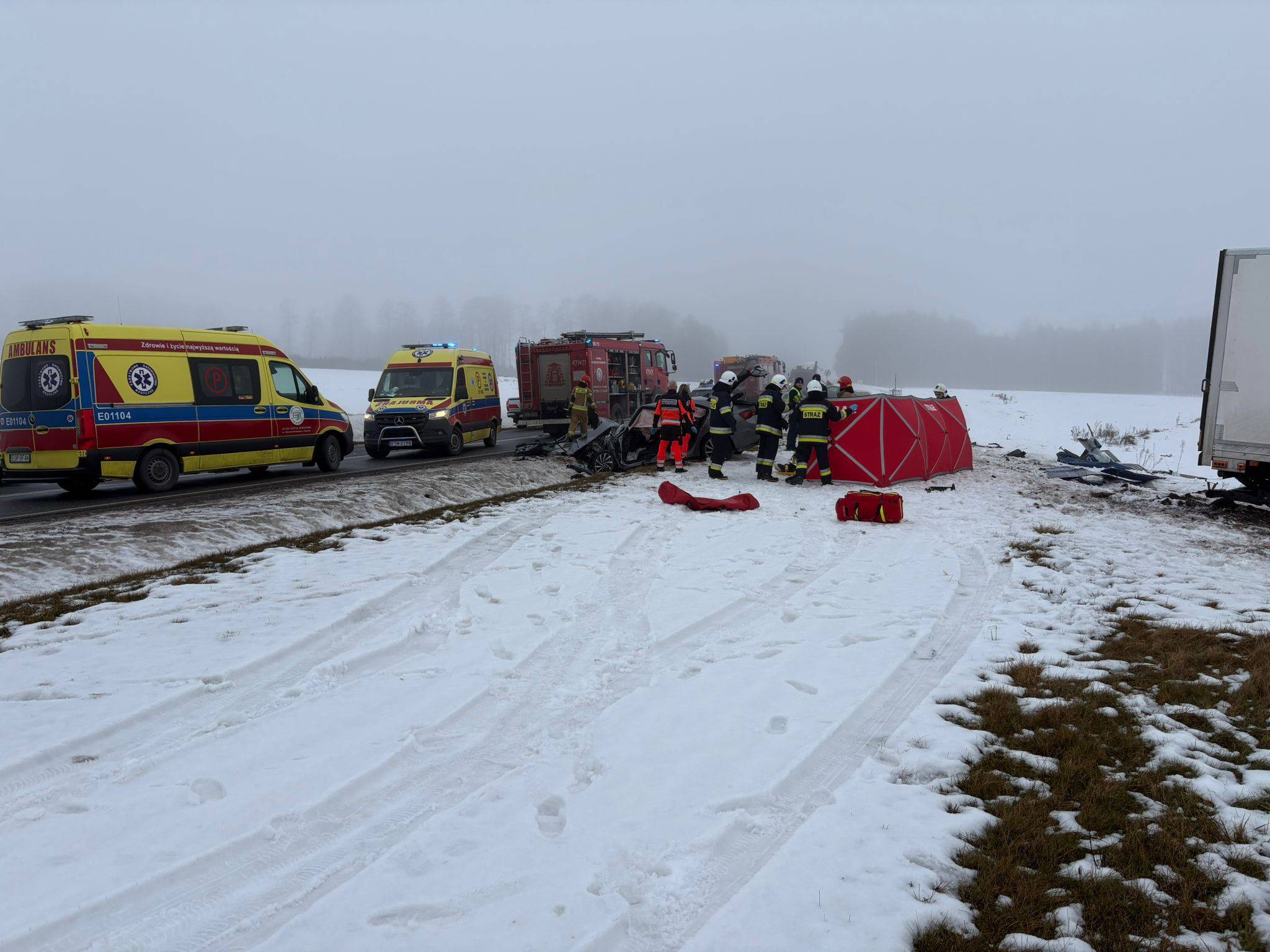 Do pozostałych poszkodowanych zadysponowano kolejny Zespół Ratownictwa Medycznego. Na miejscu intensywnie pracują wszystkie służby ratunkowe.